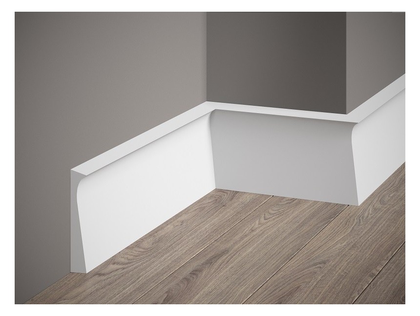 Czym jest biała listwa przypodłogowa QS004P Mardom Decor? To najwyższej jakości produkt premium w kolorze białym, o wyjątkowym i unikalnym designie. To właśnie ta listwa idealnie sprawdza się do wykańczania wielu różnych wnętrz, urządzonych w stylu eleganckim, nowoczesnym, glamour, amerykańskim, a także skandynawskim. Listwa QS004P Mardom Decor ma wyjątkowy geometryczny design, dlatego też jest inna niż wszystkie i wyróżnia się w portfolio marki. Biała listwa przypodłogowa QS004P Mardom Decor została wykonana z wysokiej jakości poliuretanu, który jest materiałem bardzo odpornym i trwałym, stąd też tak długa żywotność listwy. Po zamontowaniu perfekcyjnie prezentuje się ona na ścianie przez wiele lat, nie wymagając wymiany. Poliuretan jest odporny między innymi na uszkodzenia mechaniczne, a także na działanie wody. Biała listwa przypodłogowa QS004P Mardom Decor dodatkowo została pokryta najwyższej jakości lakierem, który poprawia jej trwałość. Jej wykończenie jest niezwykle eleganckie, dlatego też listwa QS004P Mardom Decor pięknie komponuje się ze ścianami pomalowanymi farbami w różnych kolorach oraz wykroczeniach. To produkt premium, który doskonale sprawdzi się zarówno w przestrzeniach prywatnych, jak też użytkowych.