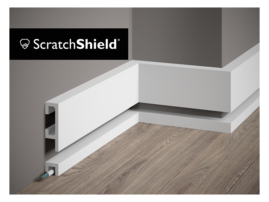 Wykończeniowa listwa Mardom Decor QL019+QL021 szczególnie wspaniale prezentuje się w nowoczesnych wnętrzach, gdzie tworzy efekt perfekcyjnego wykończenia. W łatwy sposób ozdobi styk podłogi i ścian, ukrywając szczelinę dylatacyjną i okablowanie. Przypodłogowa listwa Mardom QL019+QL021 jest gotowa do malowania. Wykonanie z trwałych, odpornych na wilgoć i uszkodzenia tworzyw, umożliwia zastosowanie jej w każdym wnętrzu.