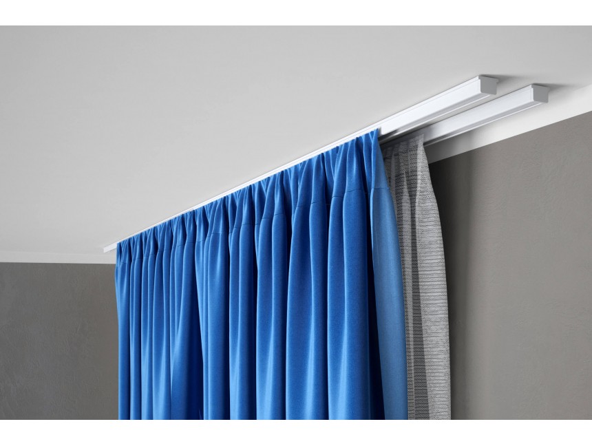 Pofesjonalny i funkcjonalny system do zawieszania średnio-ciężkich tkanin. Szybki montaż do sufitu. Wytrzymałe wciskane suwaki - odporne na promieniowanie UV. Maksymalne obciążenie 10 kg/m. Wykończenie szyn: lakier proszkowy z nałożoną warstwą opatentowanego smaru.